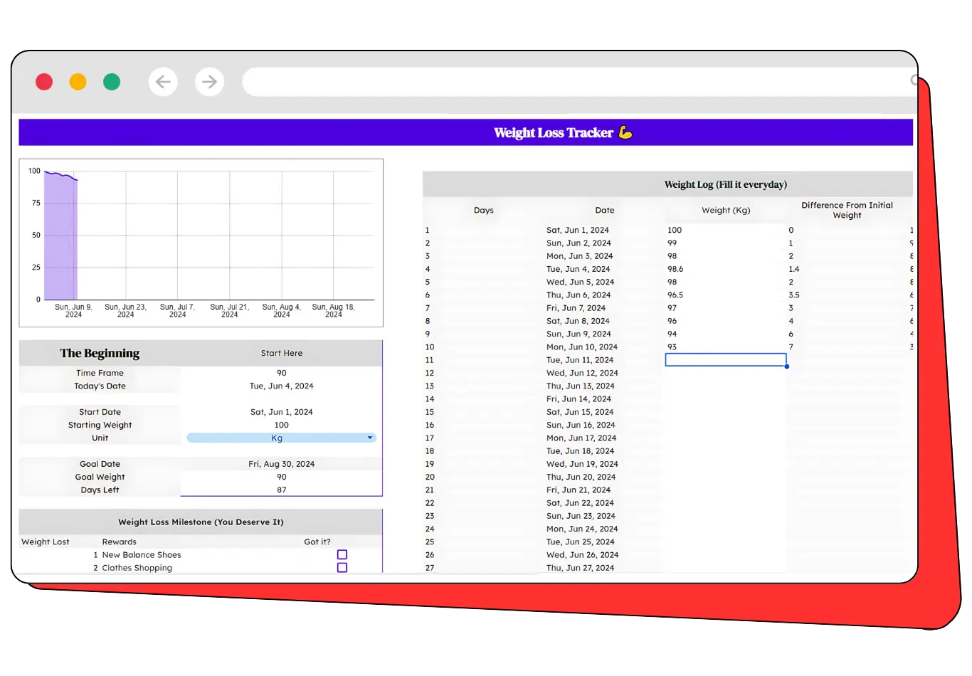 I’ve tried various methods to track my weight loss, but nothing compares to this spreadsheet. It’s so easy to use, and the visuals really help me stay motivated. I love being able to see my progress over time—it’s incredibly rewarding!